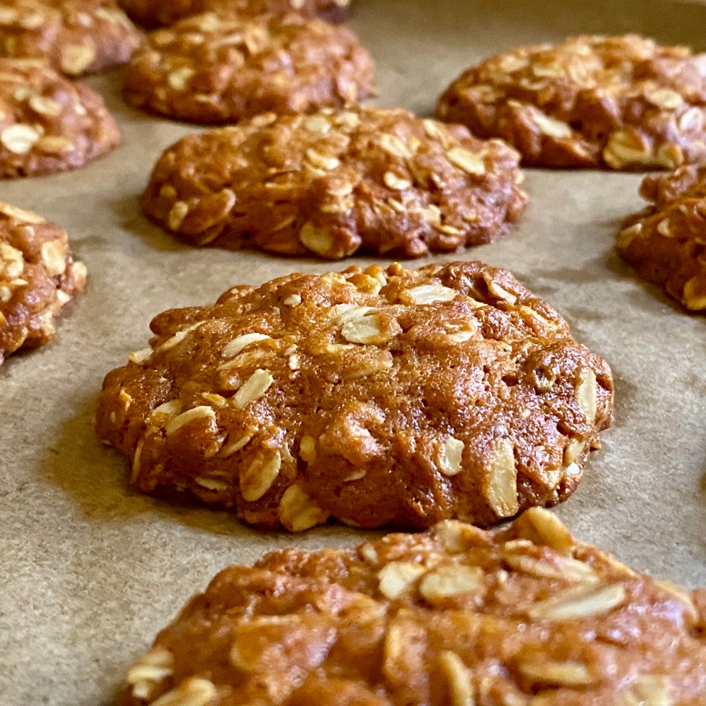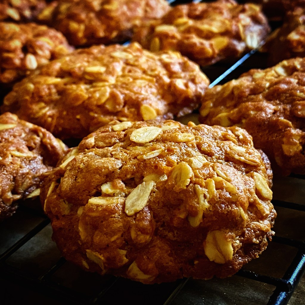 After many years of fails, this morning I searched for an Anzac biscuit recipe, chewy, no coconut.  The original, pre-1925 recipe came up.  It is a winner.