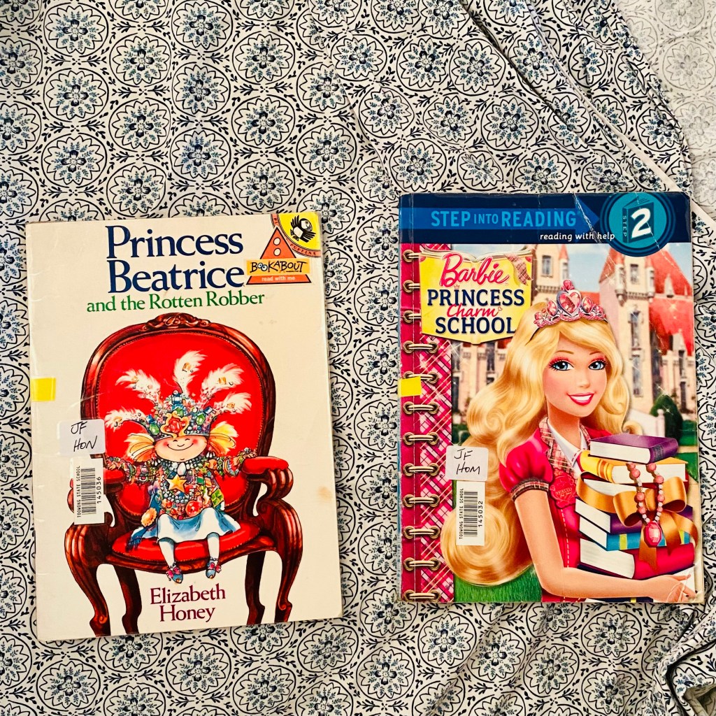 I realise I should document what C borrows from the school library, too. She gets such a kick out of being able to borrow every single week. This week she brought home two princess books. Of course. Princess Beatrice and the Rotten Robber (Elizabeth Honey), and Barbie Princess Charm School. One I love and the other … I don’t love it. Unfortunately, C feels the opposite. That said, she has picked plot holes throughout the Barbie book so I’m not too disappointed.