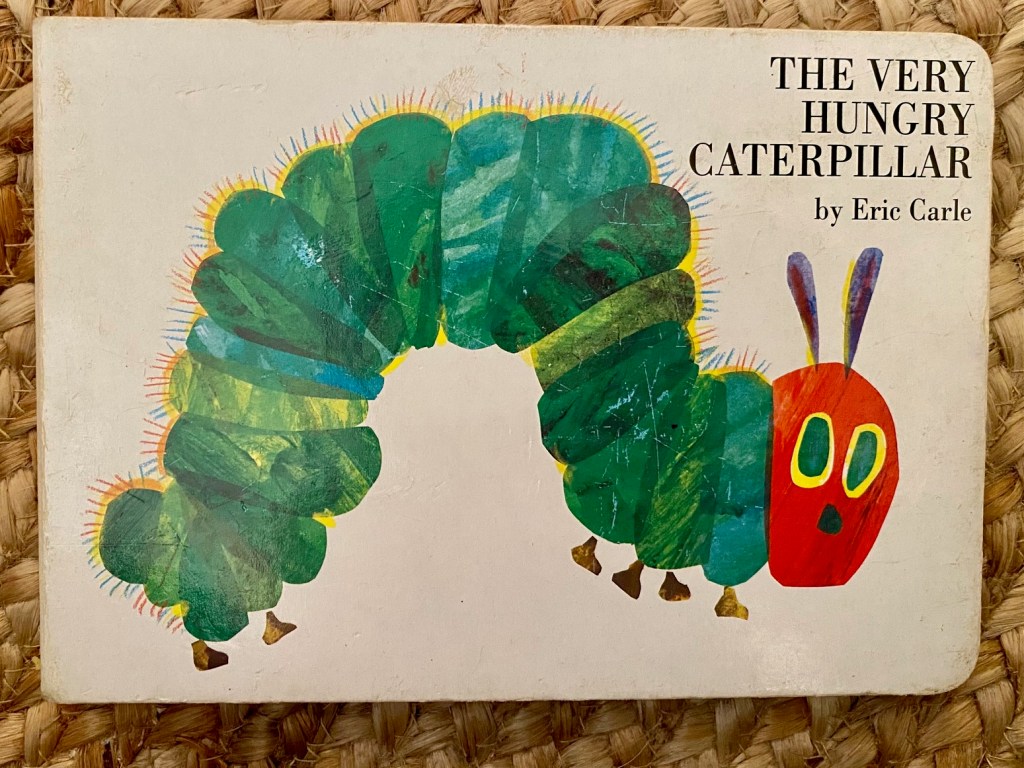 The Very Hungry Caterpillar (Eric Carle). We have a hard copy so yay for chewing, and the 3-year-old has started insisting on ‘reading’ it to us.