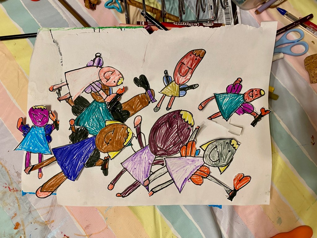 Elements like the lights catching E’s purple dress and turning her ultraviolet and sparkly. S wearing the romper I made for E two years ago which is from licensed Bluey fabric and having staff delighted with her outfit. C’s skort twirling as she jumped and danced.