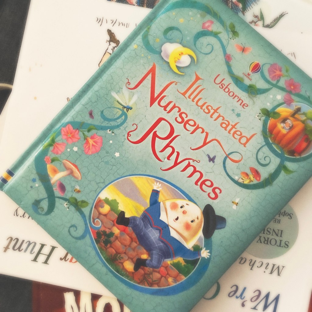 The other top request for girls – mostly E – this week has been Bard’s Rhyme Time. I find this to be a very annoying book. The “story” words rhyme, but the lines don’t scan very well, so putting some rhythm into it is always an effort and just not always possible. For a book that is from a brain development company (I assume – the name suggests that) one would think that this would have been ironed out before printing. And asked EVERY time the flap is lifted, is WHY IS THERE A STAR NEXT TO THE CAR that makes absolutely no sense what’s it doing there?